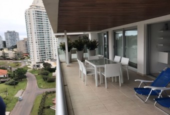 Excelente departamento en edificio Le Parc con todos los servicios frente al mar en Playa Brava. Piso alto con vista panoramica. Living comedor con salida a ...