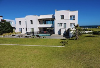 Excelente planta en edificio bajo de categoría frente a Playa Bikini Beach en Manantiales. Amplio living comedor con salida a terraza jardín con parrillero p...